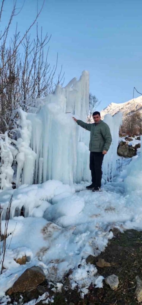 Bölgeden geçerken bu muhteşem görüntüyü kaydeden vatandaşlar, şunları söyledi: “Burası İçme’ye bağlı Değirmenönü köyü. Aşırı soğuklardan dolayı buz sarkıtları oluşmuş. Uzunluğu yaklaşık 5 metreyi buluyor. Gerçekten büyüleyici bir görüntü ortaya çıkmış. Palulu dayının da dediği gibi, anlatmaya gerek yok, görüyorsunuz.”